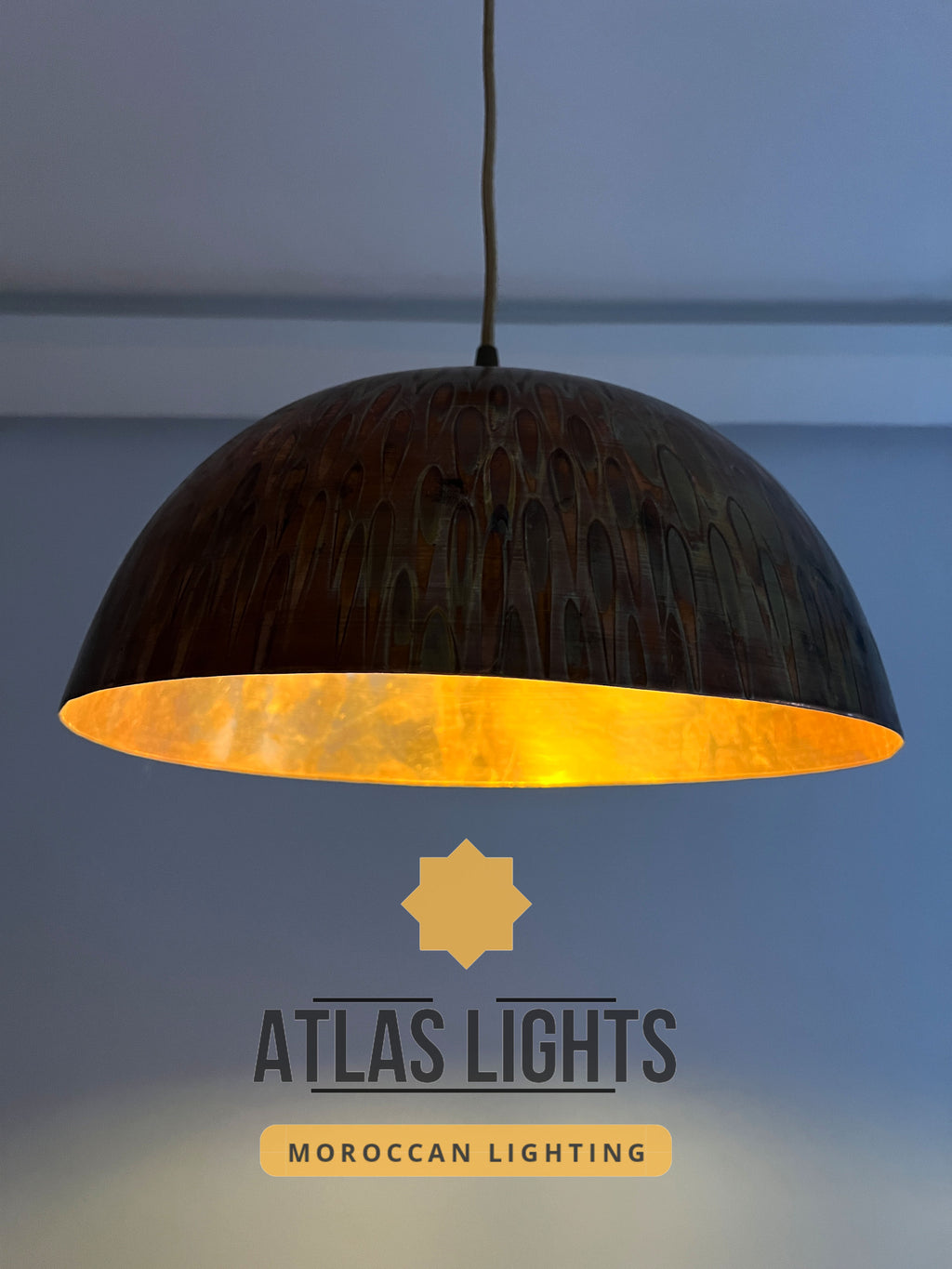 Moroccan Copper Pendant Light : Hand-Engraved Dome Ceiling Lamp